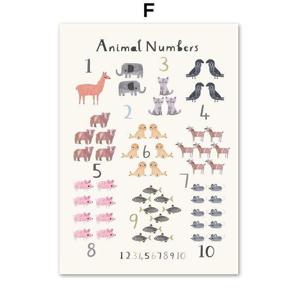 アート ポスター 壁 絵画 イラストアルファベットシリーズ 数字と動物 デザインNO-F A4 A3 A2 送料無料