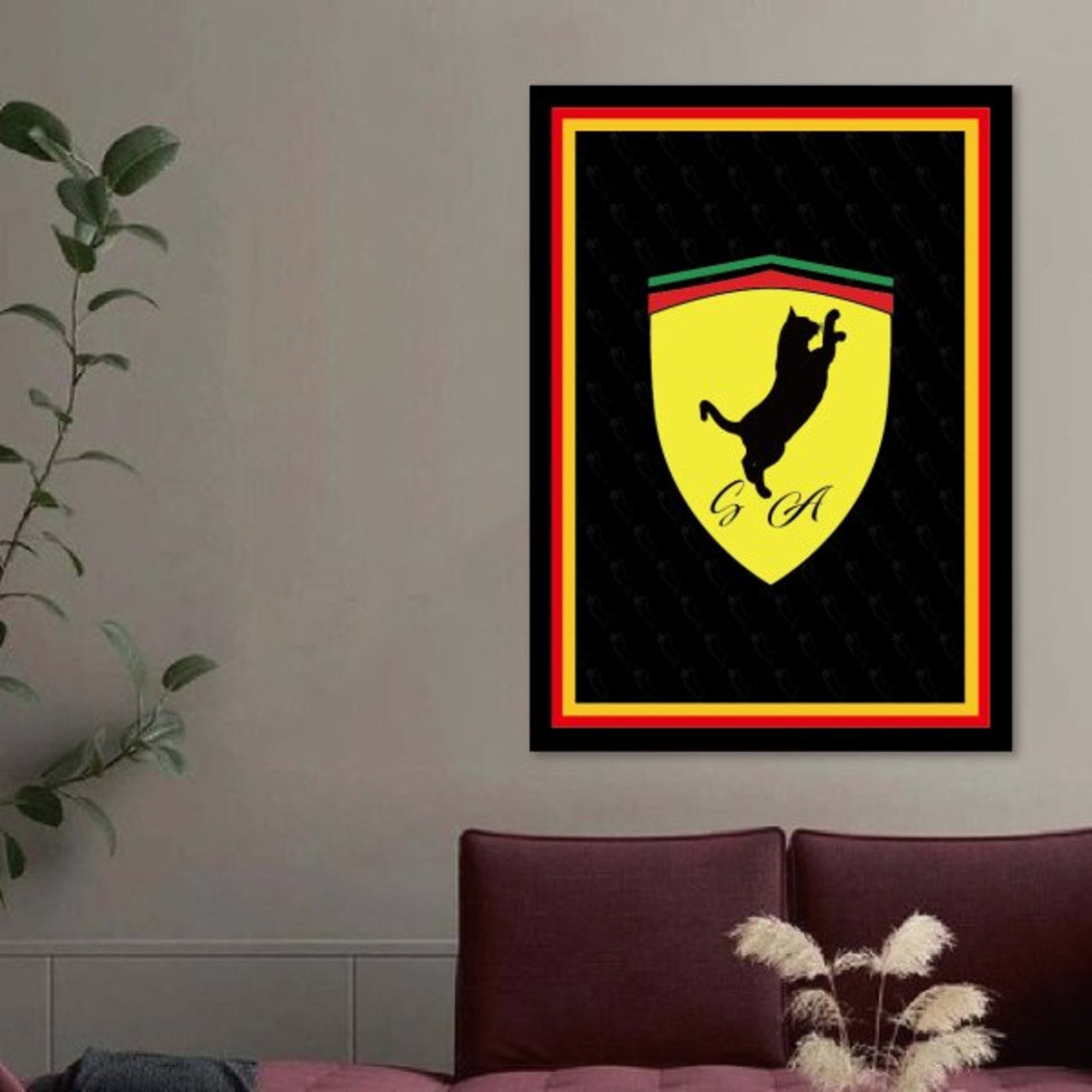 黒猫 エンブレムデザインのパロディーアート リビングルームや玄関など幅広くご利用いただけます!壁に飾っても、立てかけて飾ったりできます。ご注文前のご質問はお気軽に♪