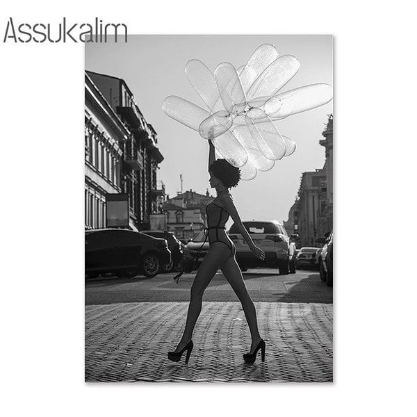 アート ポスター 壁 絵画 モノクロシリーズ 女性・バルーン デザインNO-d A4 A3 A2 送料無料