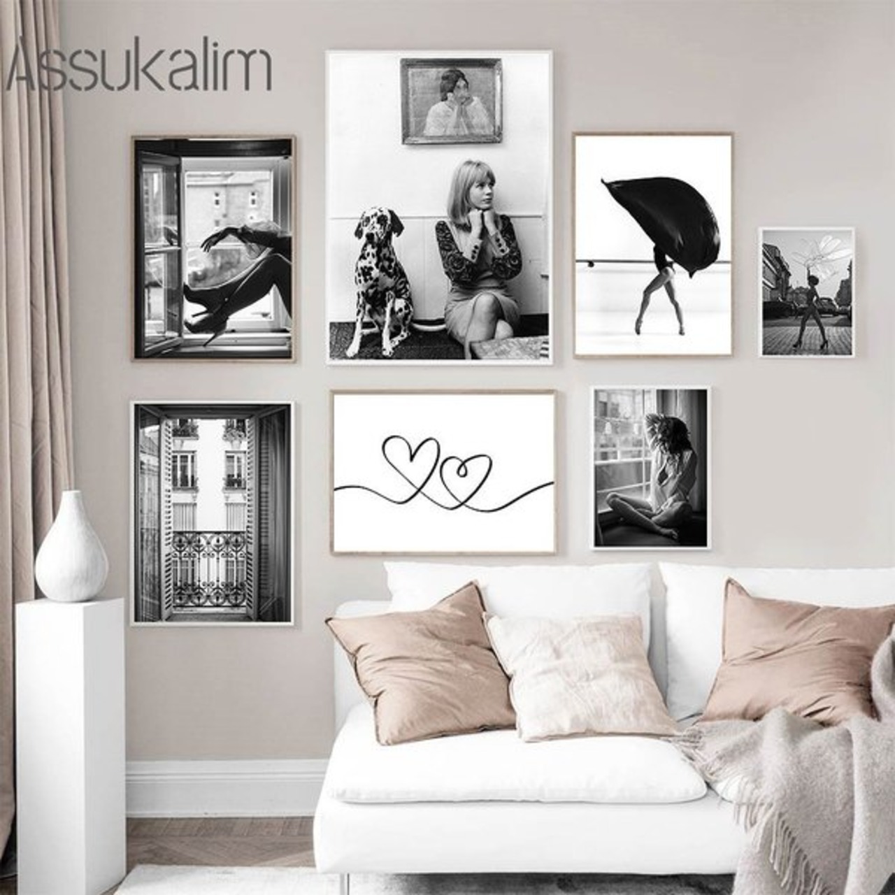 アートト 壁の絵画 モノクローム モノクロ 窓・女性・ハート アートフレーム 玄関 壁かけ 部屋 ギフト プレゼント 新築祝い