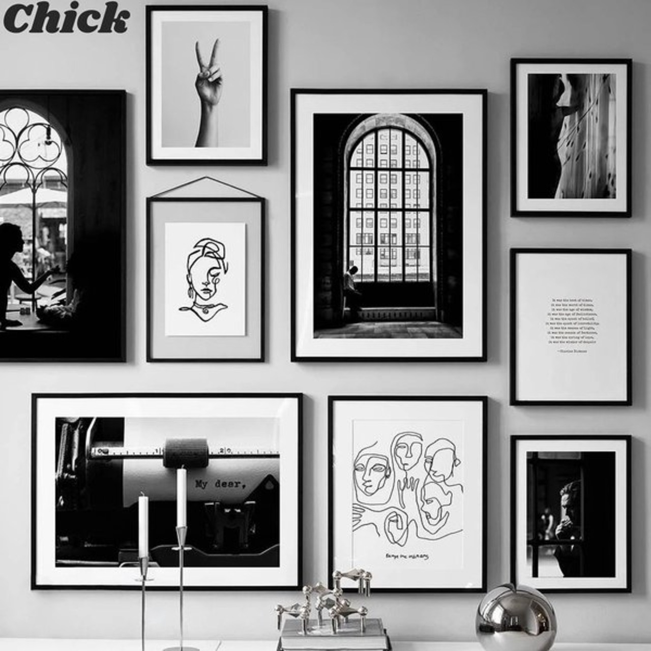 アートト 壁の絵画 モノクローム モノクロ 窓・抽象画・手・チャールズディケンズ アートフレーム 玄関 壁かけ 部屋 ギフト プレゼント 新築祝い