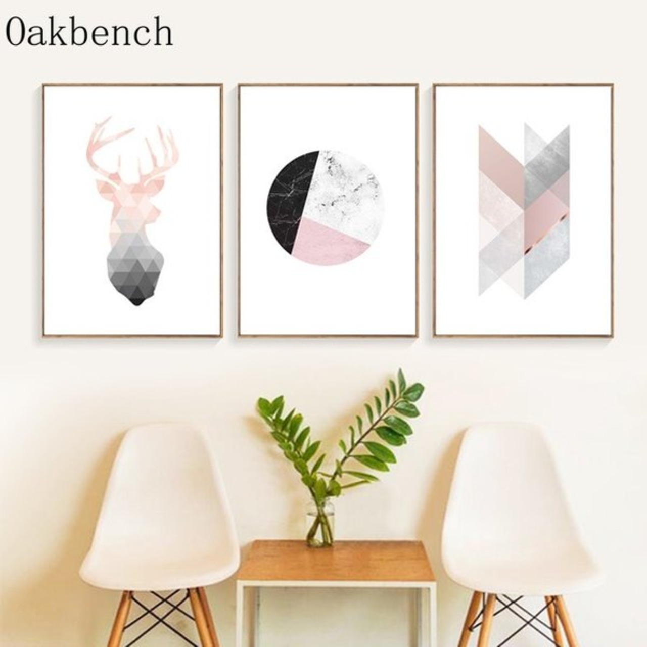 アート ポスター 壁 絵画 北欧 幾何学抽象画と鹿シリーズ ピンクとグレー タイプ9 A4 A3 A2 送料無料