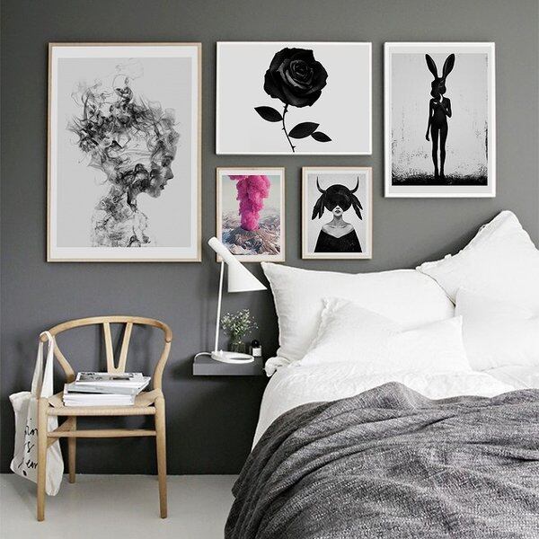 アートト 壁の絵画 モノクローム モノクロ 女性・火山・ウサギ・ダチョウ アートフレーム 玄関 壁かけ 部屋 ギフト プレゼント 新築祝い