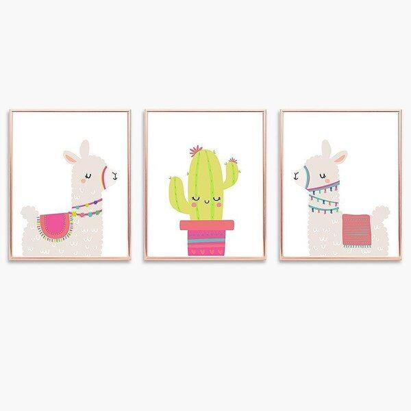 アート ポスター 壁 絵画 イラスト 動物シリーズ アルパカ・サボテン 3枚セット A4 A3 A2 送料無料