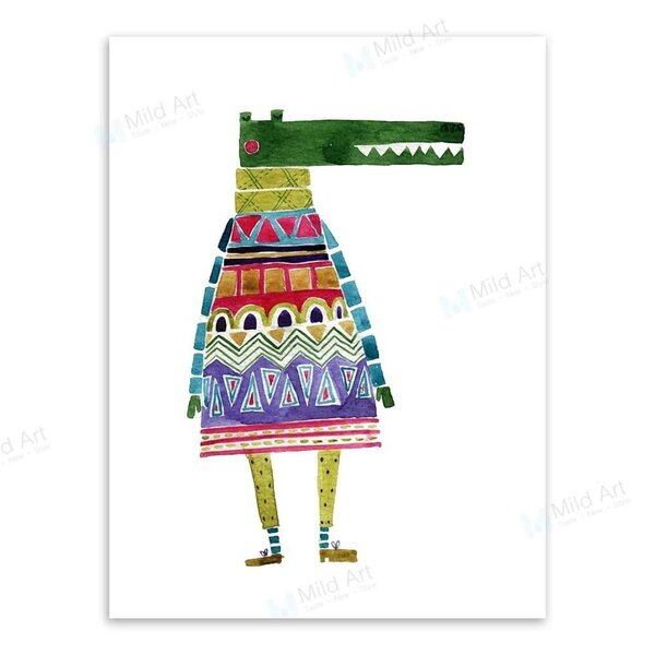 アート ポスター 壁 絵画 北欧 可愛い動物シリーズ ワニ(女性) A4 A3 A2 送料無料