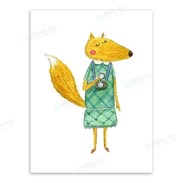 アート ポスター 壁 絵画 北欧 可愛い動物シリーズ キツネ(女の子) A4 A3 A2 送料無料