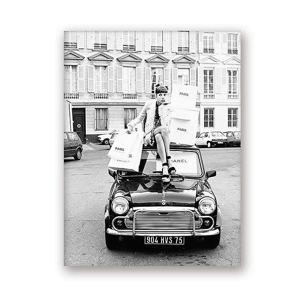 アートト  壁の絵画  モノクローム写真 モノクロ ファッション ガール ヴィンテージカー アートフレーム 玄関 壁かけ 部屋  ギフト プレゼント 新築祝い