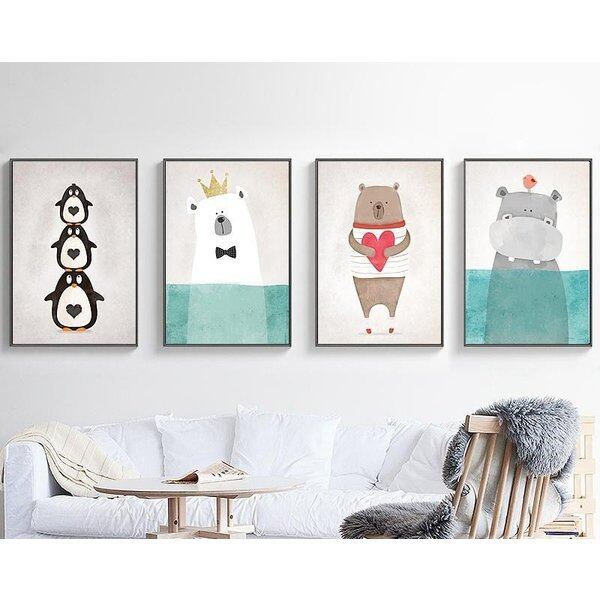 イラスト 動物 しろくま・カバ・ペンギン・ハート・王冠 キッズルーム アートフレーム 玄関 壁かけ 部屋 北欧 ポップ ギフト プレゼント 新築祝い