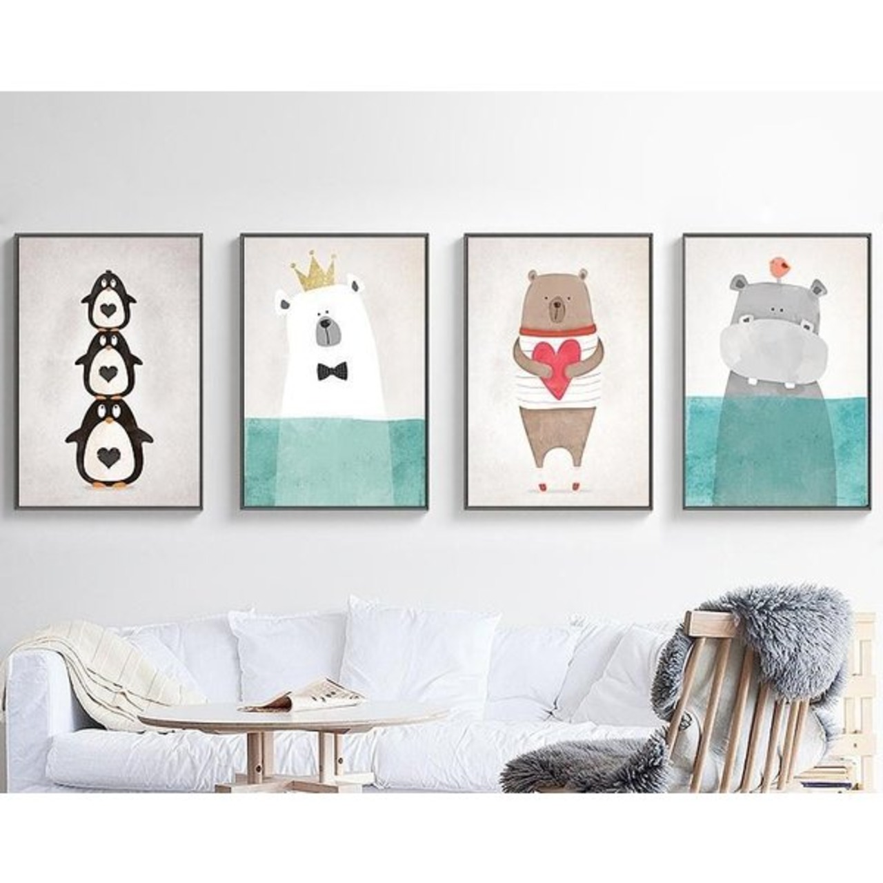 イラスト 動物 しろくま・カバ・ペンギン・ハート・王冠 キッズルーム アートフレーム 玄関 壁かけ 部屋 北欧 ポップ ギフト プレゼント 新築祝い