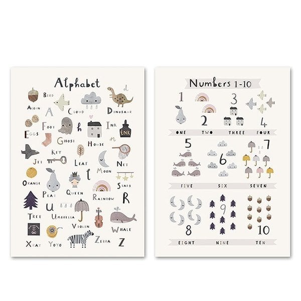 アート ポスター 壁 絵画 動物イラストシリーズ アルファベット・数字 2枚セット A4 A3 A2 送料無料